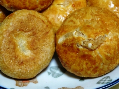 表面のパイ生地がパリパリで硬くつややか、カチカチです