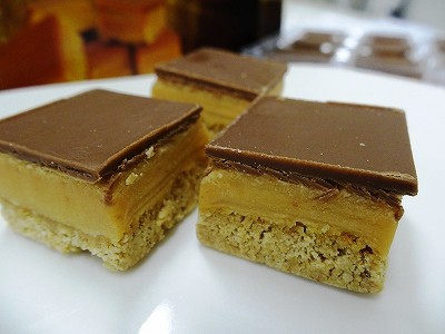 Lecithin)] ALLERGY ADVICE: Contains Gluten(Wheat),Cow's Milk, Oats, Soya. 原材料:原材料:キャラメル(51%)[砂糖、グルコースシロップ、水、植物油、コンデンスミルク、転化糖シロップ、保湿剤(植物グリセリン)無塩バター、塩、乳化剤(大豆レシチン、脂肪酸のショ糖エステル)、天然香味料]。ビスケットベース(37%)[ビスケット小麦粉、植物油、全粒小麦粉、砂糖、部分転化糖シロップ、保湿剤(植物グリセリン)、転化糖シロップ、オート麦粉、ホエイパウダー、膨張剤(重炭酸ナトリウム、重炭酸アンモニウム)、塩]。ミルクチョコレート(10%)[砂糖ココアバター、カカオマス、脱脂粉乳、乳脂肪、乳糖、乳化剤(大豆レシチン)] アレルギーアドバイス:グルテン(小麦由来)、牛乳、オート麦、大豆。 |